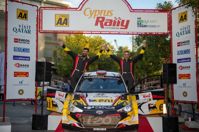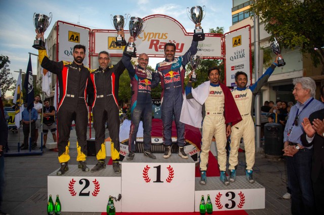 The top Cypriot crew, Panagiotis Yiangou / Aristos Nicolaou, finished in second place with a Hyundai i20 R5, ahead of the brothers Abdulaziz and Nasser Al-Kuwari from Qatar, who finished third with a Skoda Fabia R5 and were crowned FIA Middle East Rally Champions for the first time. The Ceremonial Finish and awards ceremony took place at Makariou Avenue, in the heart of Nicosia.