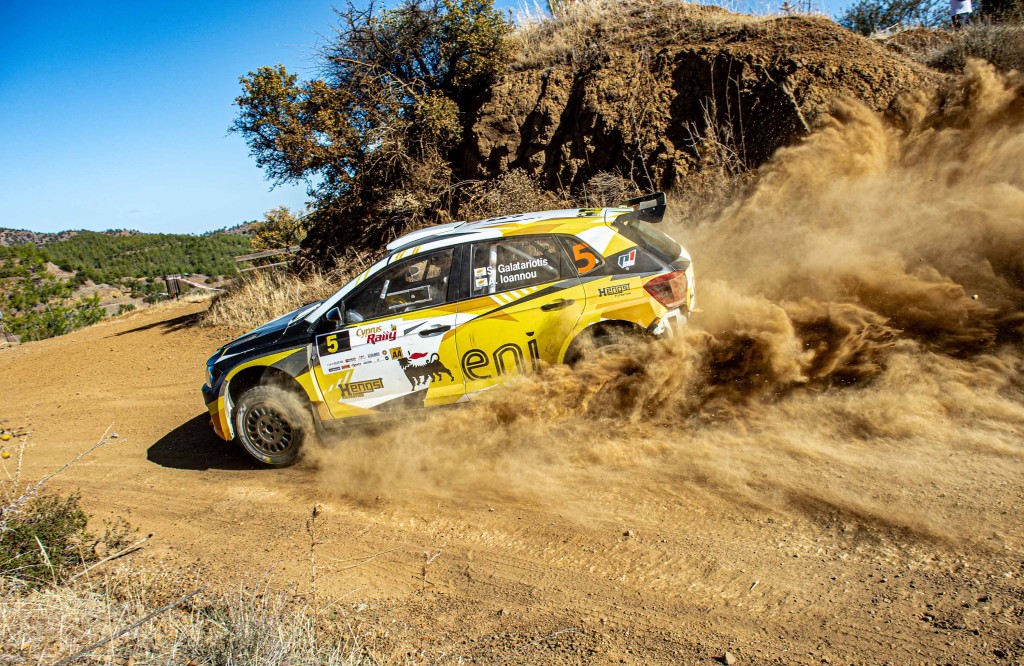 Both top drivers won three special stages each, with the Cypriot champion ending the first day in the lead, 38 seconds ahead of the driver from Qatar, who lost time due to two flat tires during the first loop. At the end of the morning loop, Galatariotis was ahead by 49.9 seconds, but Nasser won two of the three afternoon stages, closing the gap.