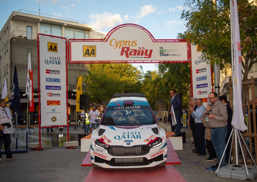The Ambassador of the State of Qatar to Cyprus, H.E. Yousef Sultan Laram, and the Mayor of Nicosia, Mr. Charalambos Prountzos, officially launched the 51st international Cyprus Rally, which began on Friday, October 18, from the center of Nicosia, and will finish on Sunday, October 20, with the crowning of the new Middle East Champion, as this event is the final round of the 2024 FIA Middle East Rally Championship.